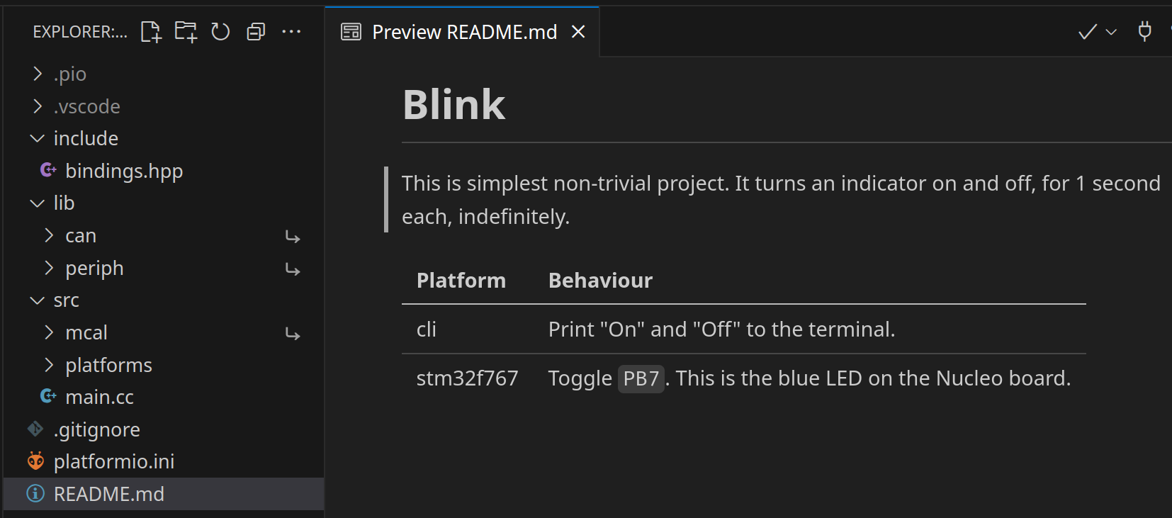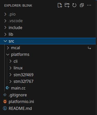 Every project uses the same structure, so let's explore the itema in the demo/blink
